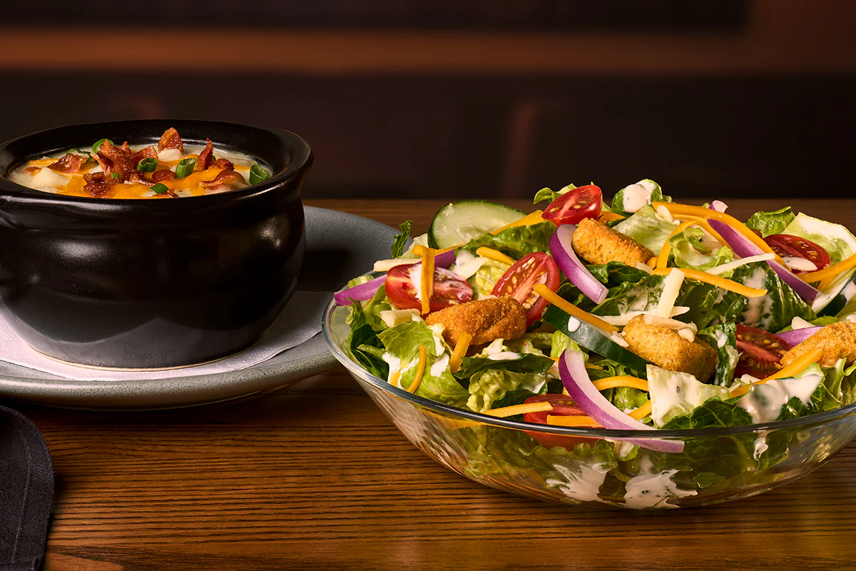 Your choice of Baked Potato Soup, Beef and Barley Soup or Tasmanian Chili and House Side Salad, Caesar Side Salad or Wedge Salad (for an additional charge). Available until 4 pm.