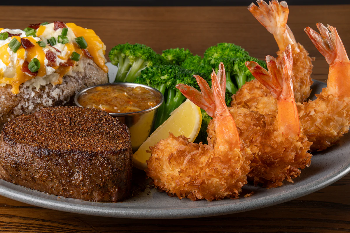 Signature center-cut sirloin and choice of jumbo grilled shrimp with garlic butter or Gold Coast Coconut Shrimp with creole marmalade.