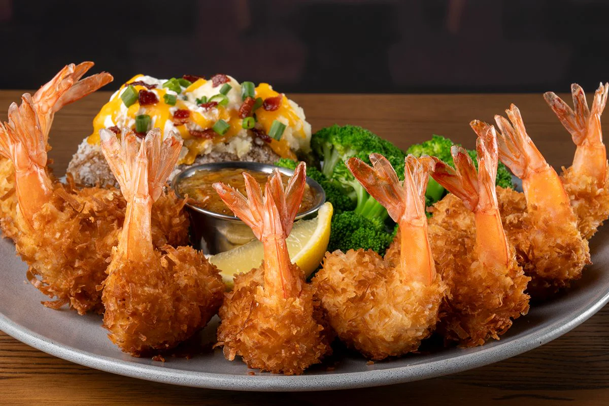 13 oz. ribeye and choice of jumbo grilled shrimp with garlic butter or Gold Coast Coconut Shrimp with creole marmalade.